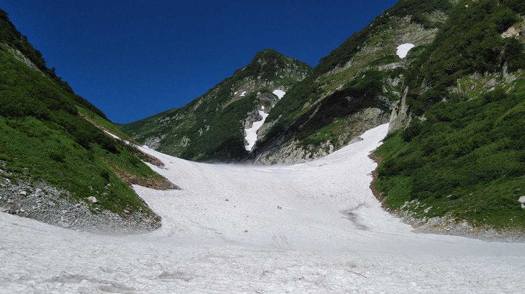 最終日は剱沢雪渓を越え、内蔵助平を通って黒部平へ。剱を間近に感じながら、雪渓、広々とした谷、奥深い景観の変化を楽しめる、印象的な一日です。一般的な周遊コースとはひと味違う、静けさとスケールの大きさを味わえるのも、このルートならではです。